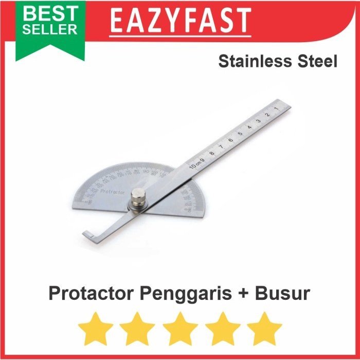 Protactor Penggaris Siku Ukur Sudut Busur Jangka Derajat Drajat Kemiringan Stainless Steel Engrave