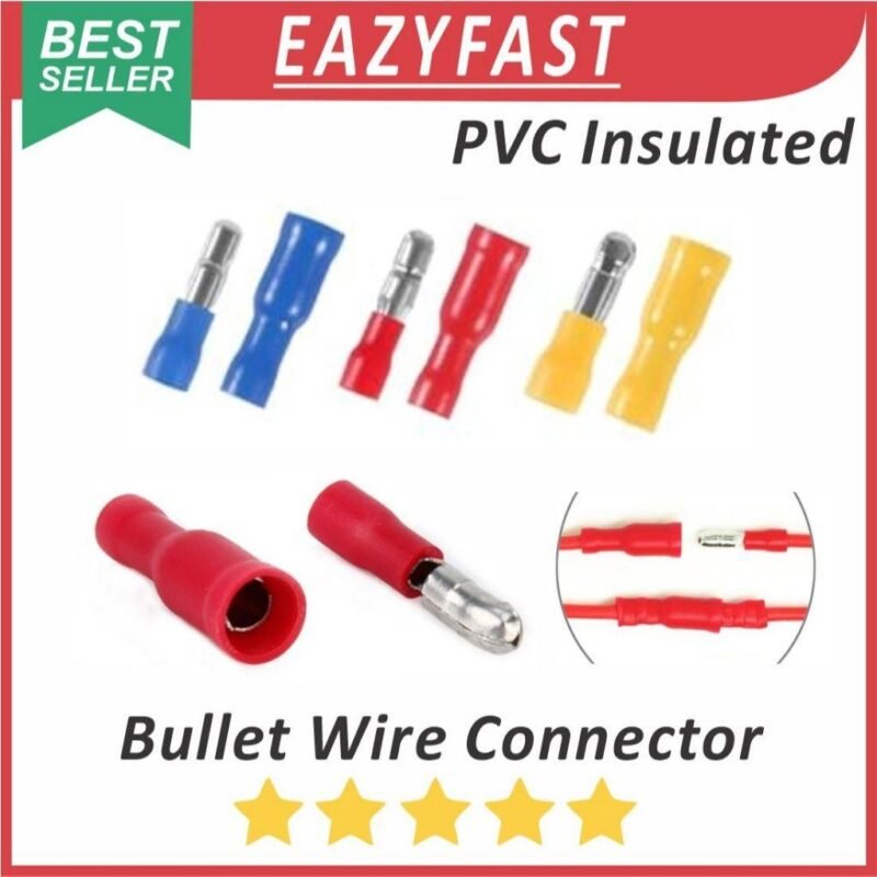Skun Bulat PVC Insulated Konektor Terminal Kabel Cucuk Bullet Butt Wire Plug Cable Connector Crimp Merah Biru Kuning Male Female