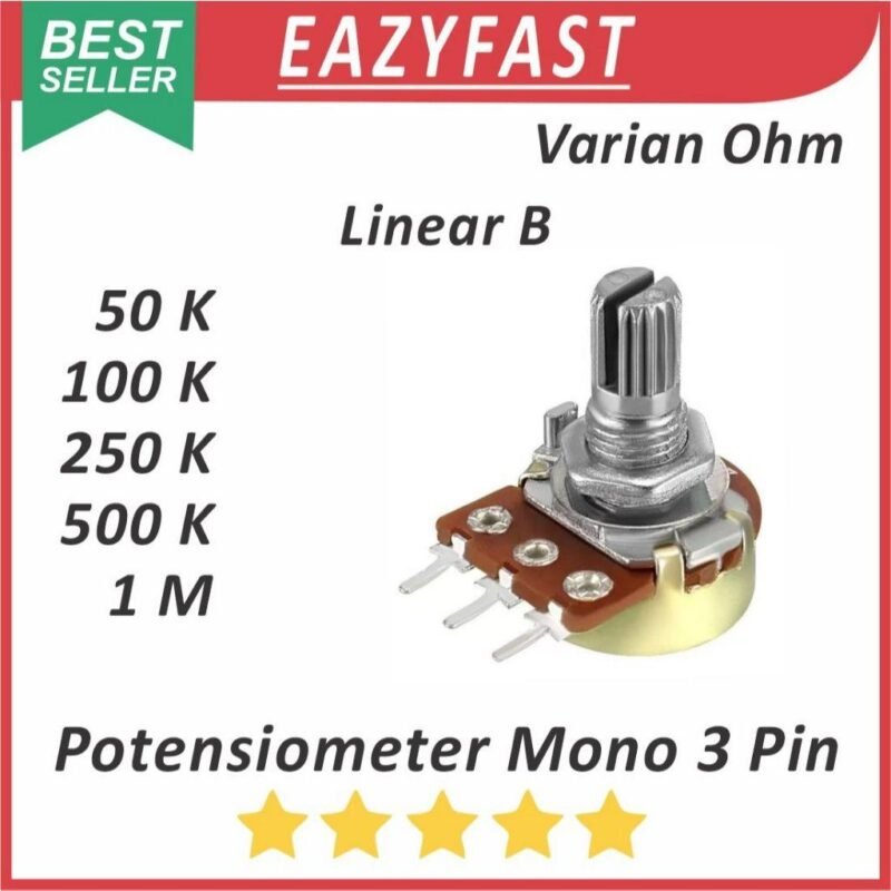Potensiometer Mono B Linear 3P 3 P Pin Kaki 1K 2K 5K 10K 20K Potensio Potentio Meter Potentiometer 1 2 5 10 20 K Ohm
