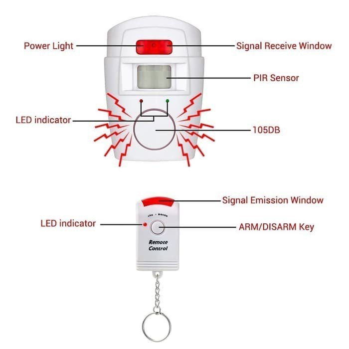Alarm ini sangat berguna bagi Anda untuk menjaga keamanan rumah Anda, memberikan keamanan selagi Anda tidak di rumah. Alarm akan berbunyi dengan tingkat kenyaringan hingga 105dB apabila ada gerakan yang terjadi pada saat alarm ini dinyalakan.