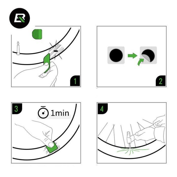 Jika ban bocor ditengah jalan, kini Anda dapat langsung memperbaikinya dengan cara ditambal dengan stiker khusus ban sepeda ini. Jika sudah tertambal maka Anda tinggal memompanya.
