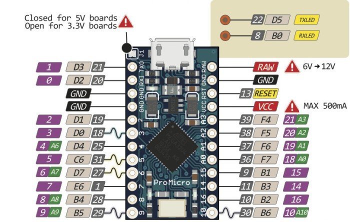 – ATmega32U4 running at 5V/16MHz