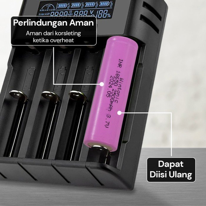 Baterai 18650 Wintonic 2500mAh Lithium Ion Li-Ion Batre Cas Ces Charge Recharge Ori Original Real