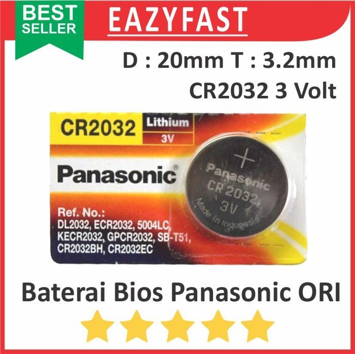 Baterai BIOS CMOS CR2032 Original Panasonic CR 2032 3V Kancing Koin