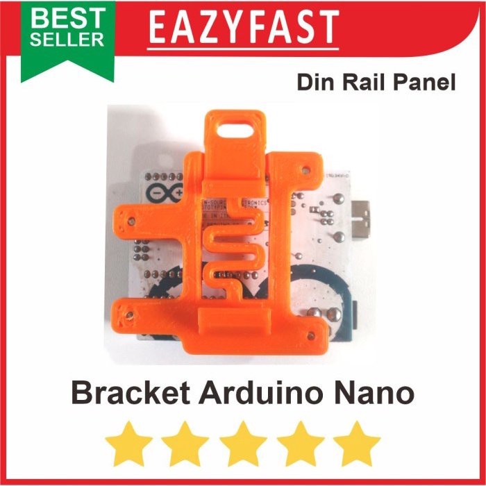 Bracket tersebut biasanya terbuat dari bahan yang tahan terhadap lingkungan dan memiliki desain yang sesuai dengan ukuran dan kebutuhan modul Arduino Nano. Dengan menggunakan bracket ini, Anda dapat dengan mudah memasang dan mengamankan modul Arduino Nano pada kotak kontrol atau sistem lainnya yang menggunakan MCB Din Rail atau panel rel.