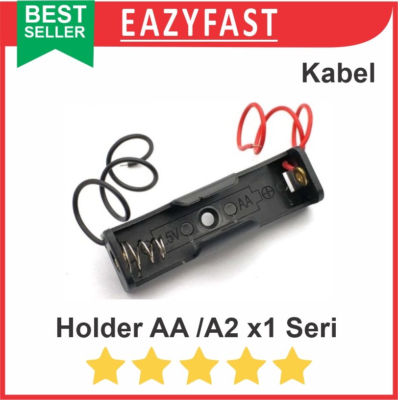 Case Kotak Rumah Tempat Dudukan Baterai AA A2 Isi 1 Port x1 1x Seri Kabel Casing Battery Holder 1.5V 1.5 V Volt