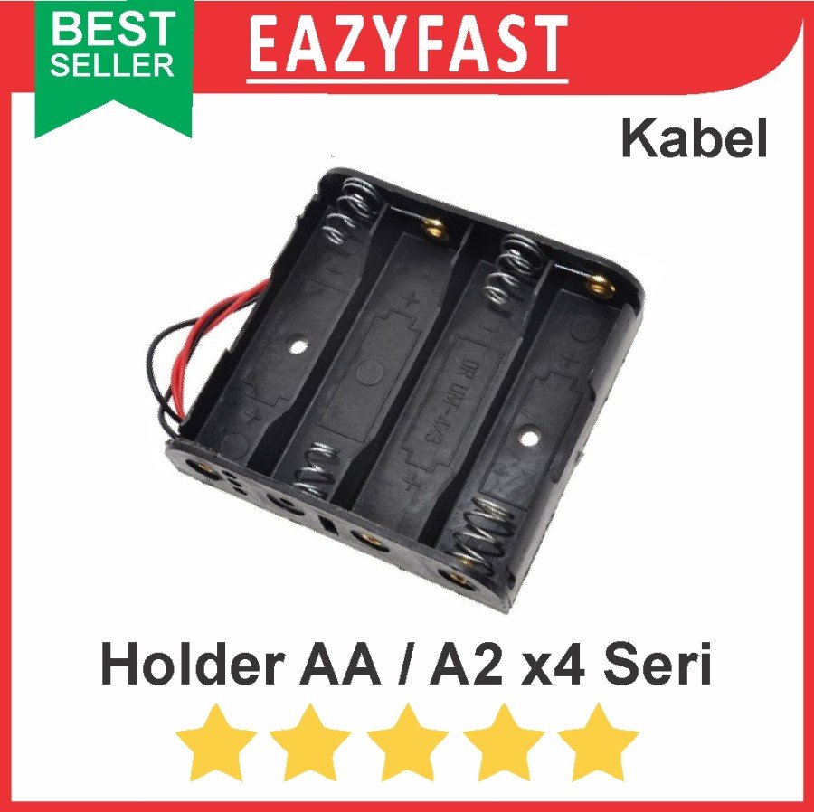 Be the first to review “Case Kotak Rumah Tempat Dudukan Baterai AA A2 Isi 4 Port x4 4x Seri Kabel Casing Battery Holder 6V 6 V Volt” Cancel reply