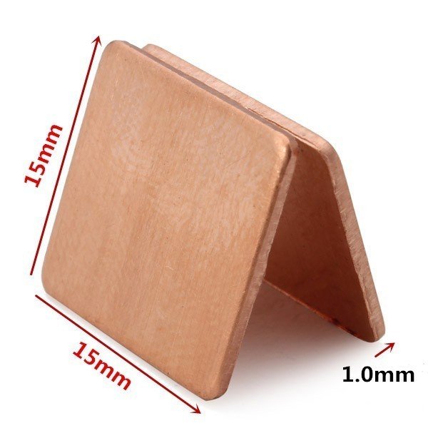 Plat tembaga murni ini digunakan sebagai thermal pad yang baik karena memiliki nilai penghantar panas yang sangat baik (Thermal conductivity: 401W/mK)