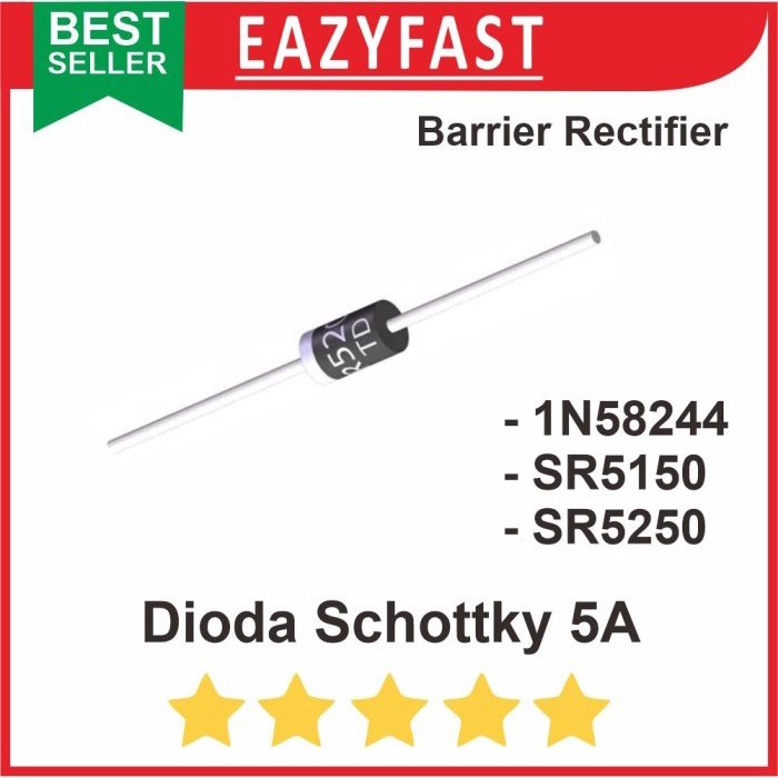 SR5250: Dioda Schottky dengan arus maksimum 5A. Dioda ini memiliki tingkat tegangan terbalik yang lebih tinggi daripada SR5150, sehingga cocok untuk aplikasi yang membutuhkan tegangan terbalik yang lebih tinggi.