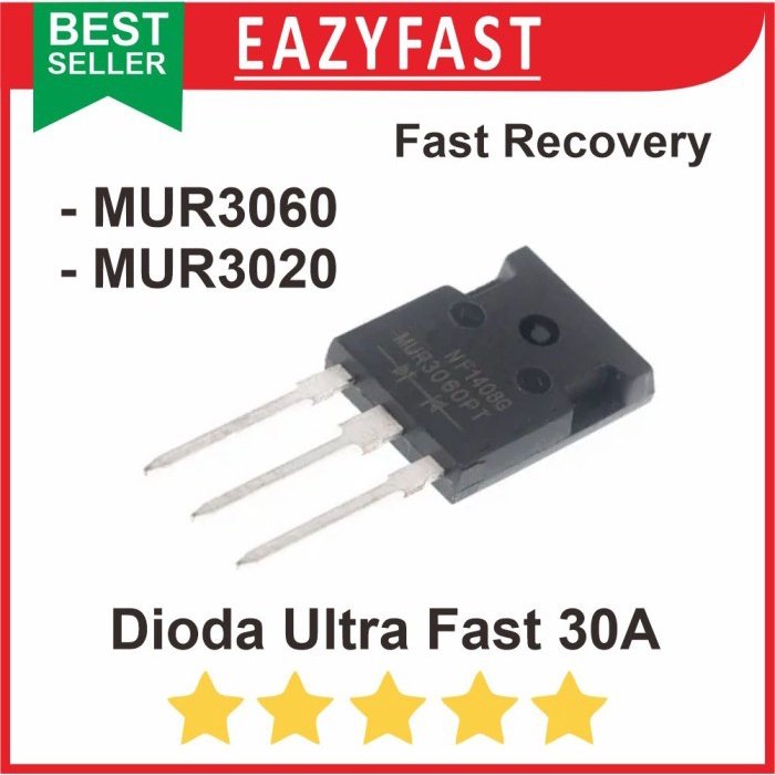 Dioda Ultra Fast 30A, seperti MUR3020 dan MUR3060, adalah dioda penyearah dan switching ultra cepat yang memiliki kemampuan penyearahan arus sebesar 30 Ampere (30A). Dioda ini dirancang untuk memberikan respon waktu yang cepat dan pemulihan yang cepat setelah putus arus.