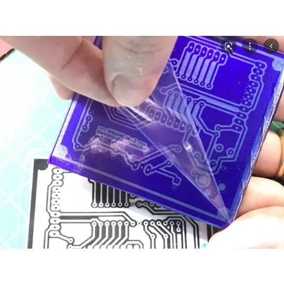 Photoresist Dry Film adalah lembaran berbentuk plastic atau di buat dengan bahan khusus yang bisa di gunakan untuk mencetak berbagai layout PCB dengan hasil yang sangat baik dan rapi,walau dengan jalur yang sangat kecil sekalipun yang mungkin saja dengan metode sablon tidak terlalu bagus tapi dengan Photoresist Dry Film ini maka hasil nya akan maksimal.