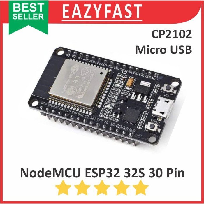 ESP-32S (30 Pin) ESP-WROOM-32 WiFi Microcontroller 2.4GHz 2 in 1 Dual-Core WiFi + Bluetooth Processor Integrated Chip CP2102 Low Power
