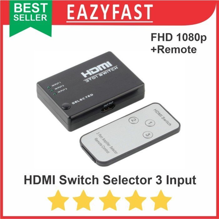 Anda dapat mencolok 3 HDMI device ke alat ini seperti Media Player, DVD Player, PS4, PC, dll. Tidak perlu lagi mencabut pasang HDMI karena keterbatasan HDMI Port pada TV.