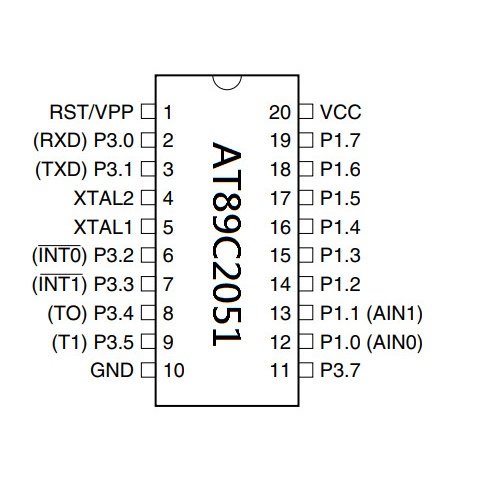 The AT89C2051 is a low-voltage, high-performance CMOS 8-bit microcomputer with 2K bytes of Flash programmable and erasable read-only memory (PEROM). The device is manufactured using Atmels high-density nonvolatile memory technology and is compatible with the industry-standard MCS-51 instruction set. By combining a versatile 8-bit CPU with Flash on a monolithic chip, the Atmel AT89C2051 is a powerful microcomputer which provides a highly-flexible and cost-effective solution to many embedded control applications.