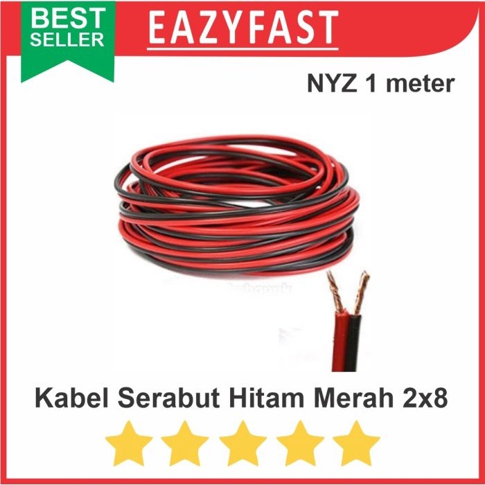 Kabel Listrik Serabut NYZ 2×8 Merah Hitam Isi 2 Serat Ecer Meter NYAF