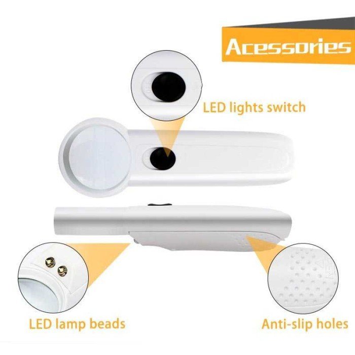 Guna membantu dalam proses melihat tulisan yang kecil, kerap kali Anda menjumpai posisi yang gelap, oleh karena itu kaca pembesar ini dilengkapi dengan lampu led yang membantu Anda dalam melihat secara lebih mendetail.