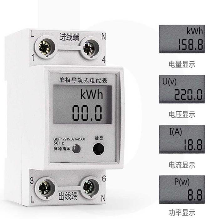 KWH Watt Volt Ampere Meter Listrik PLN MCB Din Panel LCD 200V AC 80A
