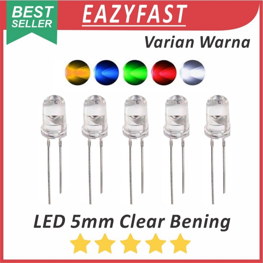 Lampu LED 5mm Warna Clear Bening Merah Hijau Biru Kuning Orange Putih Red Green Blue Yellow White 5 mm Transparan Transparent Clean