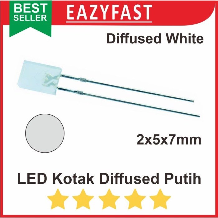 Dengan LED Kotak 5mm Diffused White Putih Petak Persegi Panjang 2x5x7 mm, Anda mendapatkan sumber pencahayaan putih yang merata dan jelas untuk berbagai aplikasi.