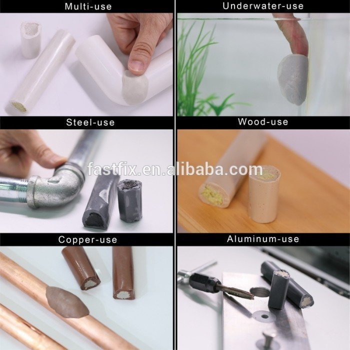 Lem ini cocok u/ memperbaiki, menambal, mengisi, merekatkan beton, batu bata, logam, plastik, kayu, fiberglass, permukaan yg dicat, laminasi, bahkan u/ di bawah air.