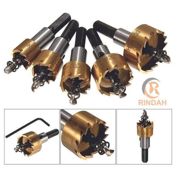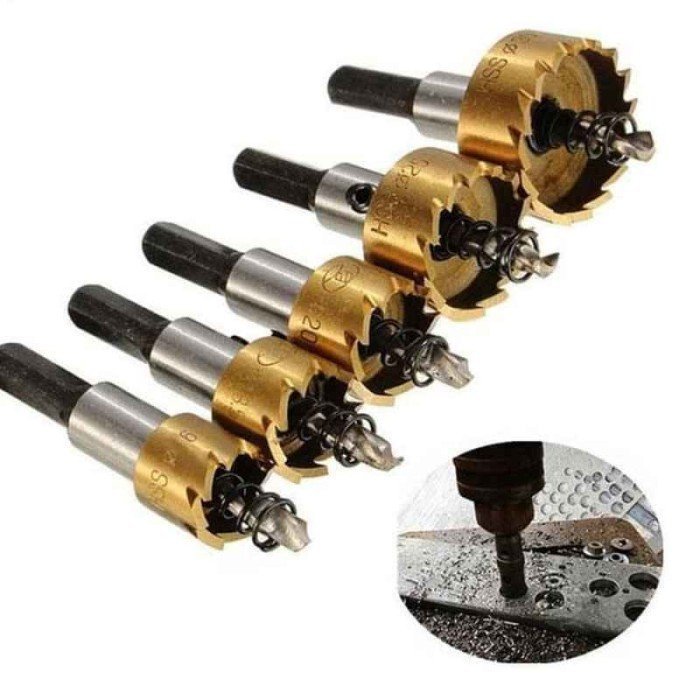 Mata Bor Hole Saw Drill Bit HSS Holesaw Wood Kayu Metal Besi Set 5 Pcs