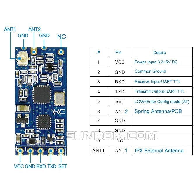 HC-12 wireless RF UART communication module is a new generation of multi-channel embedded wireless data transmission module. The Radio frequency of 433.4 – 473.0MHz, can be setting a communication channel, step is 400kHz, a total of 100 channels. The module maximum transmit power is 100mW (20dBm), and -116dBm receiver sensitivity air of the 5000bps baud rate, communication distance about 500 meters.