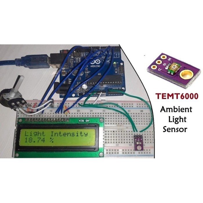 TEMT6000 merupakan sensor untuk mendeteksi intensitas cahaya, Semakin banyak cahaya yang diterima, maka semakin besar tegangan pada signal pin. Berbeda dengan sensor BH1750 atau light dependent resistor (LDR), TEMT6000 memiliki ukuran sangat kecil (dibanding BH1750) dan akurasi yang tinggi (dibanding LDR).