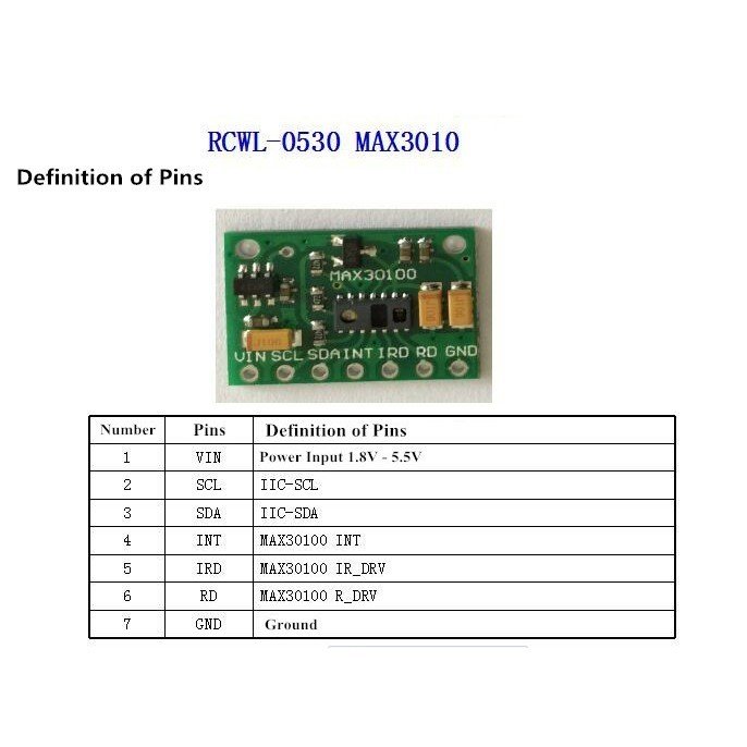 Sensor detak jantung dan oksigen Max30100 adalah sensor yang mampu mengukur detak jantung (bpm) dan oksigen dalam darah (% O2) hanya dengan ujung jari. Dengan LED inframerah dan LED merah serta IC Max30100, sensor ini menghasilkan data detak jantung dan oksigen dalam darah lewat interface I2C.