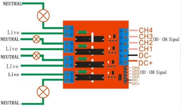 Modul Solid State Relay SSR 4Ch 4 Ch Chanel Channel 5 V Volt 5V DC Module SPDT Low Level Arduino Compatible Opto Isolation