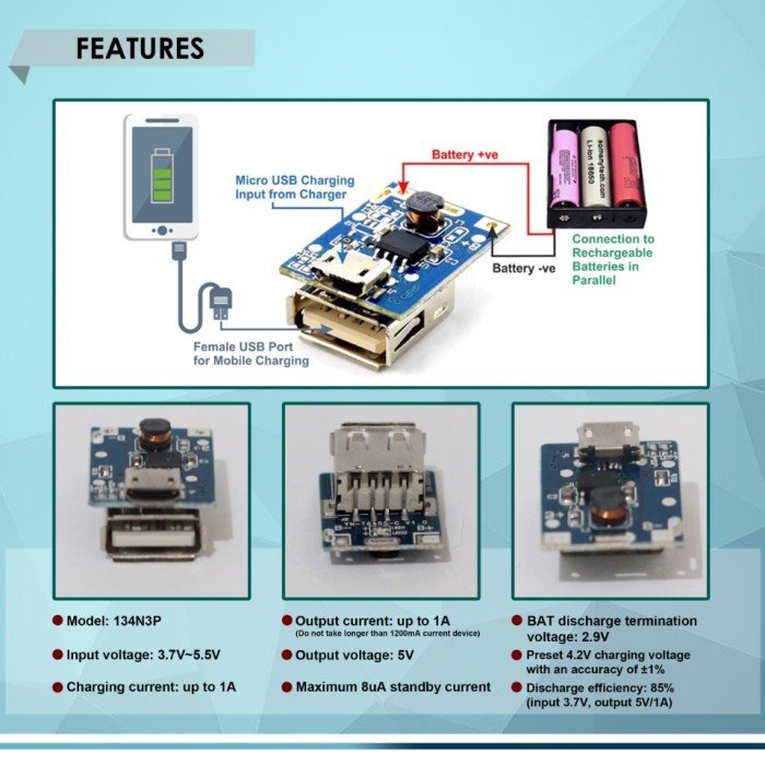 3) Mendukung Mode TRICKLE dan CHARGING 0 VOLT. Artinya Modul ini 100% mendukung perlindungan khusus DISCHARGING.
