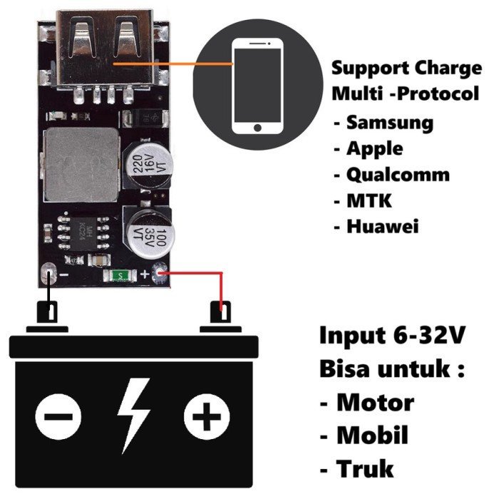 Modul USB Fast Quick Charge QC 3.0 MultiProtocol Multi Protocol 24W Charger Charging Lithium Ion TP4056 Module HW-298
