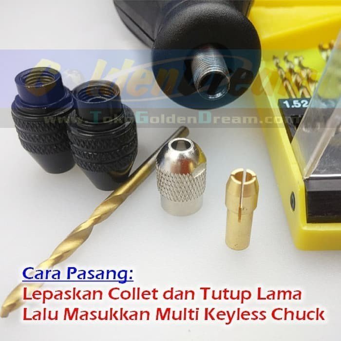 Multi Chuck M7 Keyless Tanpa Collet Mini Grinding Bor Dremel Grinder