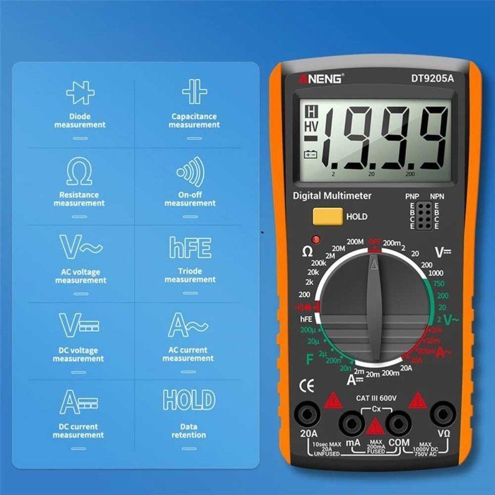 1 x ANENG Digital Multimeter Voltage Tester – DT9205A-3