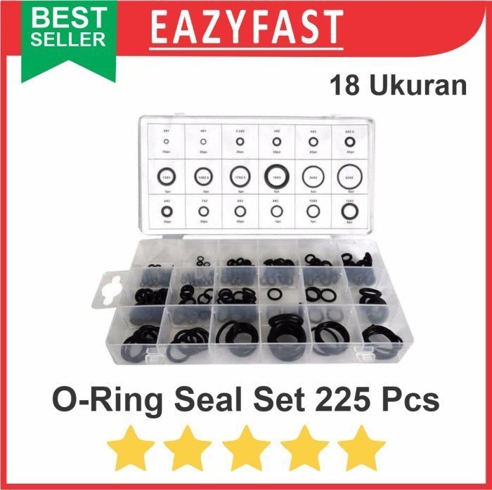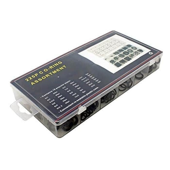 Isi 1 Pack = 225 Pcs / Box Metric O-Ring Assortment Kit, Universal Black Rubber O-Rings, 18 Sizes O-RING Type