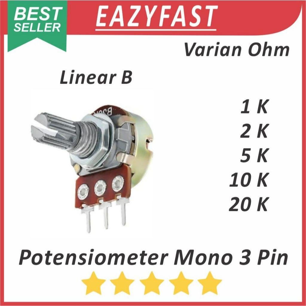 Potensiometer Mono B Linear 3P 3 P Pin Kaki 1K 2K 5K 10K 20K Potensio Potentio Meter Potentiometer 1 2 5 10 20 K Ohm