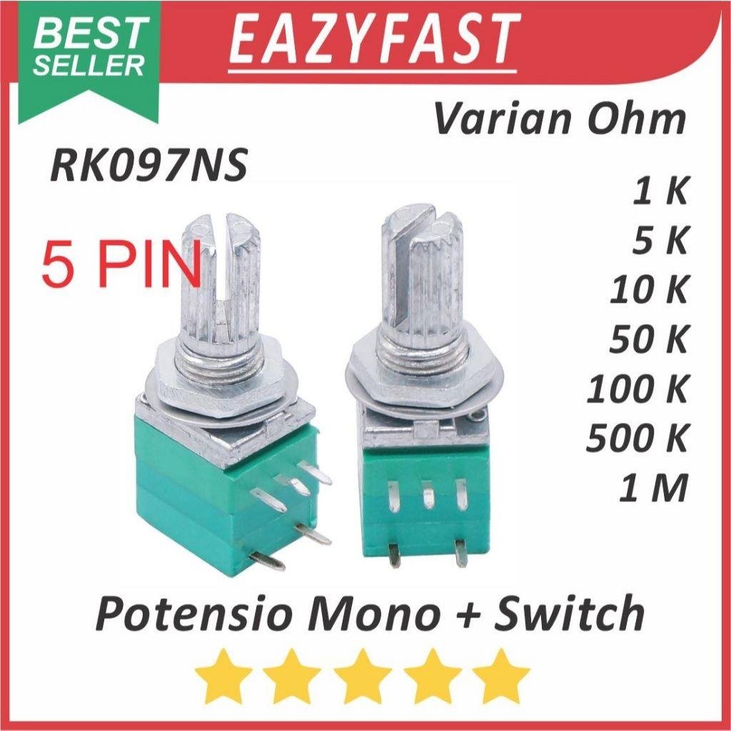 Potensiometer Saklar Audio Sealed Hijau 5P 5 P Pin Kaki 1K 5K 10K 50K 100K 500K 1M 1 5 10 50 100 500 K Ohm Switch Potensio Potentio Meter RK097NS Potentiometer B Linear