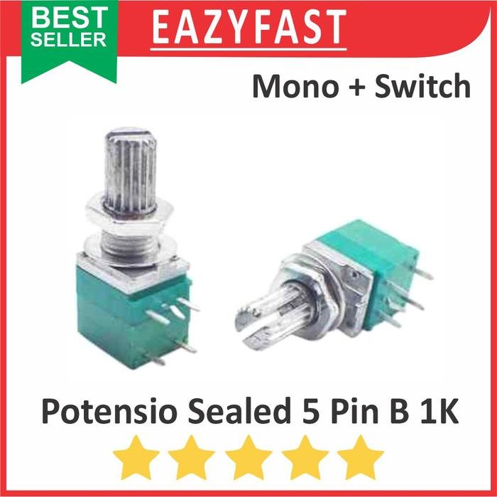 Potensiometer Sealed Saklar Switch B1K 1K B 1 K Ohm 5P 5 P Pin Kaki Mono Potensio Potentio Meter Volume Audio Hijau Linear Seal RK097NS RK 097 NS Potentiometer