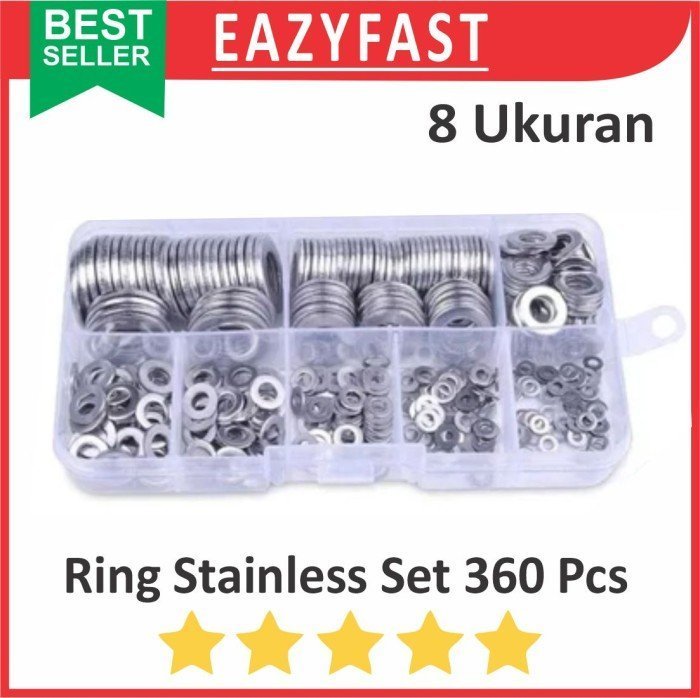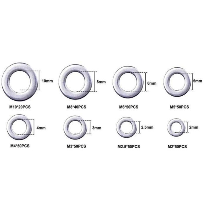 Ring Plat Stainless Set Kit 360 Pcs Steel Flat Washer Gasket Baut Oli M2 M2.5 M3 M4 M5 M6 M8 M10