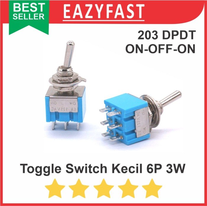 Saklar Toggle Switch 203 Kecil 6 Pin Kaki 3 Posisi 3P 3 Way ON OFF ON