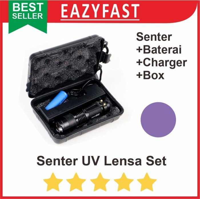 Senter LED ini memiliki cahaya ultraviolet dengan jangkauan yang luas dan besar. Senter ini cocok Anda gunakan untuk keperluan forensik ataupun mendeteksi keaslian uang kertas. Dalam paket ini, Anda tidak hanya mendapatkan sebuah senter saja, namun juga sebuah baterai, chargeran, dan kotak hardcase.