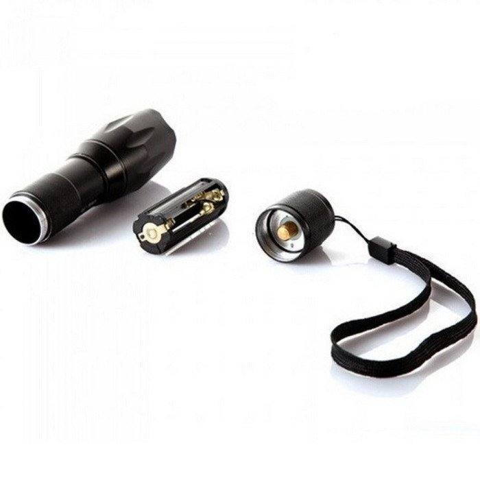 Senter LED ini menggunakan 1 buah baterai 18650 atau 3 buah baterai AAA.