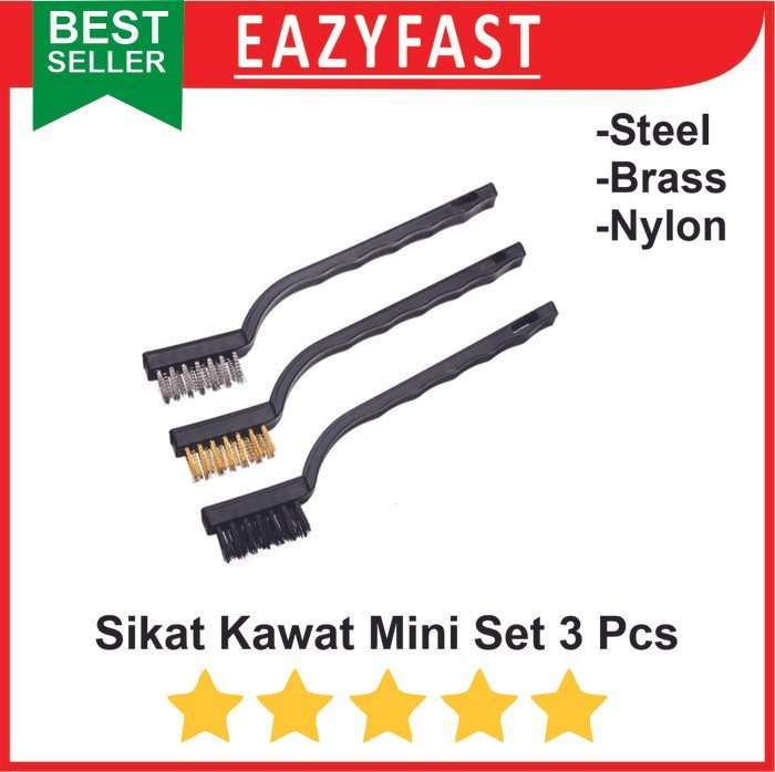 Sikat Kawat Mini Wire Brush Set 3 pcs Steel Brass Nylon Baja Kuningan
