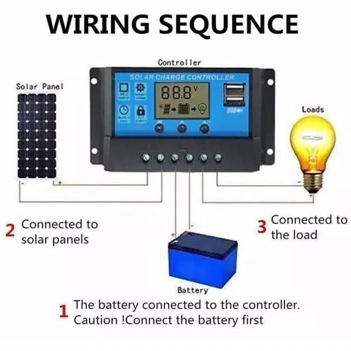 1. Controller HARUS dihubungkan dngn aki dulu. Jika tidak, BISA RUSAK!!!