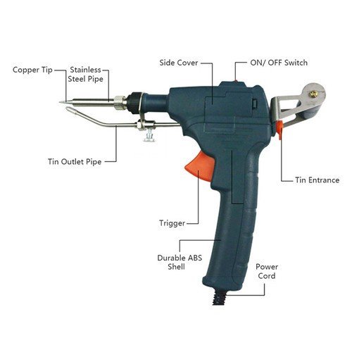 Solder ini hadir dengan desain inovatif dimana besi timah solder dapat secara otomatis di apply saat melakukan solder. Terdapat tempat untuk meletak besi timah pada bagian belakang solder ini, jika habis dapat diganti dengan mudah. Desain solder yang menyerupai pistol membuatnya gampang untuk digunakan.
