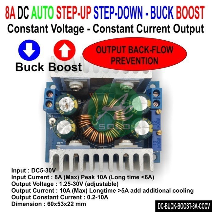Auto Buck Boost dengan arus besar 8A. Modul Step Up 8A Auto CC CV adalah solusi luar biasa untuk mengatur daya tegangan DC sesuai kebutuhan proyek Anda. Modul ini telah dirancang dengan fitur-fitur canggih yang menjadikannya alat yang kuat dan fleksibel untuk berbagai aplikasi elektronik.