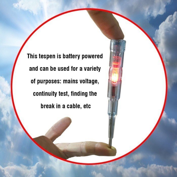 Kabel tidak perlu dialiri listrik, karena pada tespen sudah terdapat tenaga listrik sendiri dari baterai tespen. Jadi pemakaian sangat aman. Bahkan pengetesan bisa dilakukan oleh wanita.