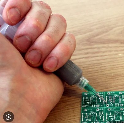 2. Aplikasikan timah cair dengan Spet pada pad PCB yg telah dihangatkan.
