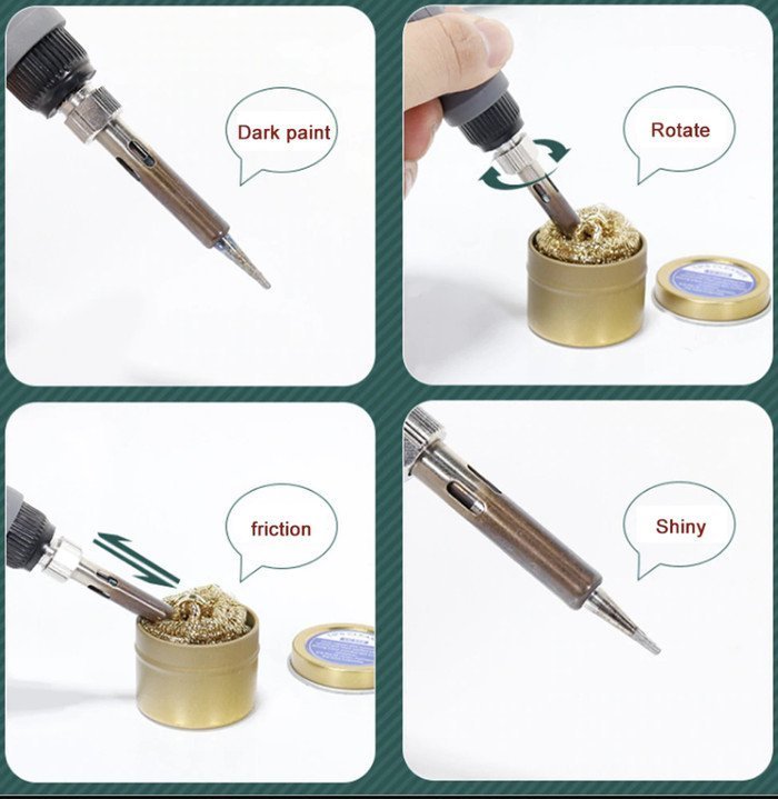 – Setiap kali selesai melakukan penyolderan, lakukan pembersihan mata solder dgn pembersih ini