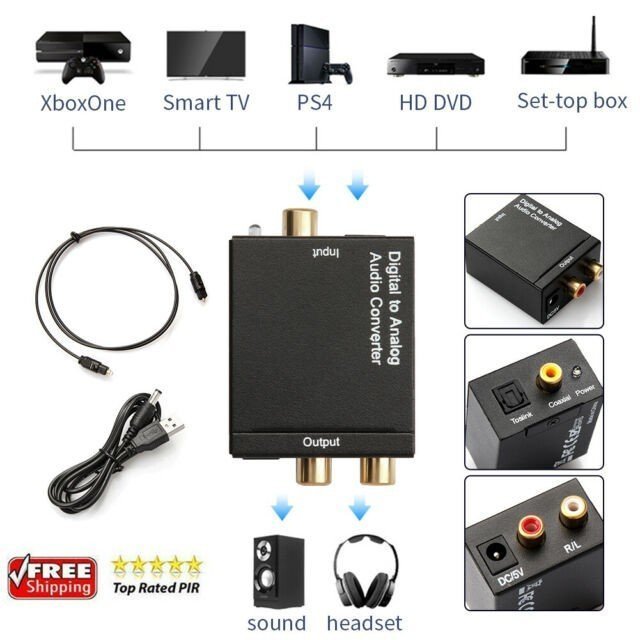 Toslink DAC Digital to Analog Audio Converter Optic SPDIF Coaxial RCA