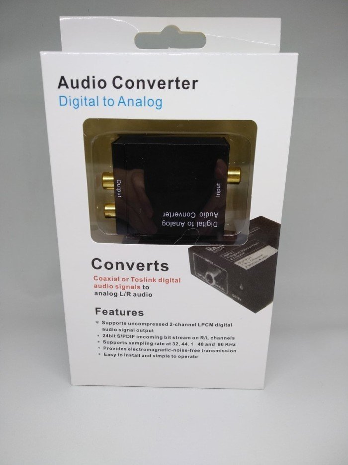 – Converts coaxial or toslink digital audio signals to analog L/R audio and